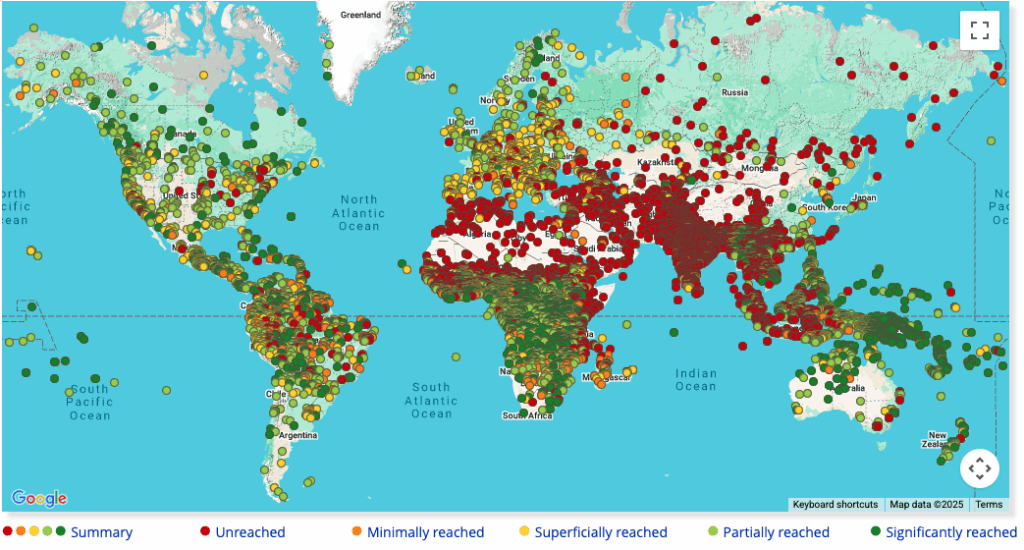 Unreached people groups = According to Joshua Project, a reputable organization specializing in research on unreached people groups, an unreached people group (UPG) is a group where there isn’t an indigenous community of believers with enough resources to evangelize the rest of their own people group without outside assistance. Specifically, this is often defined as less than 2% of the population identifying as evangelical Christians. They lack a self-sustaining, locally-led Christian community with the capacity to reach the rest of their people group. There is extremely limited access to the Gospel because of geography, culture, language, and even political, economic, and religious persecution. Of the roughly 8 billion people on the planet, 3.4 billion of them fall into the category of unreached. Of the 17,415 people groups in countries, 7,295 of them are considered “unreached” by Joshua project, approximately 42% of the world’s people groups.