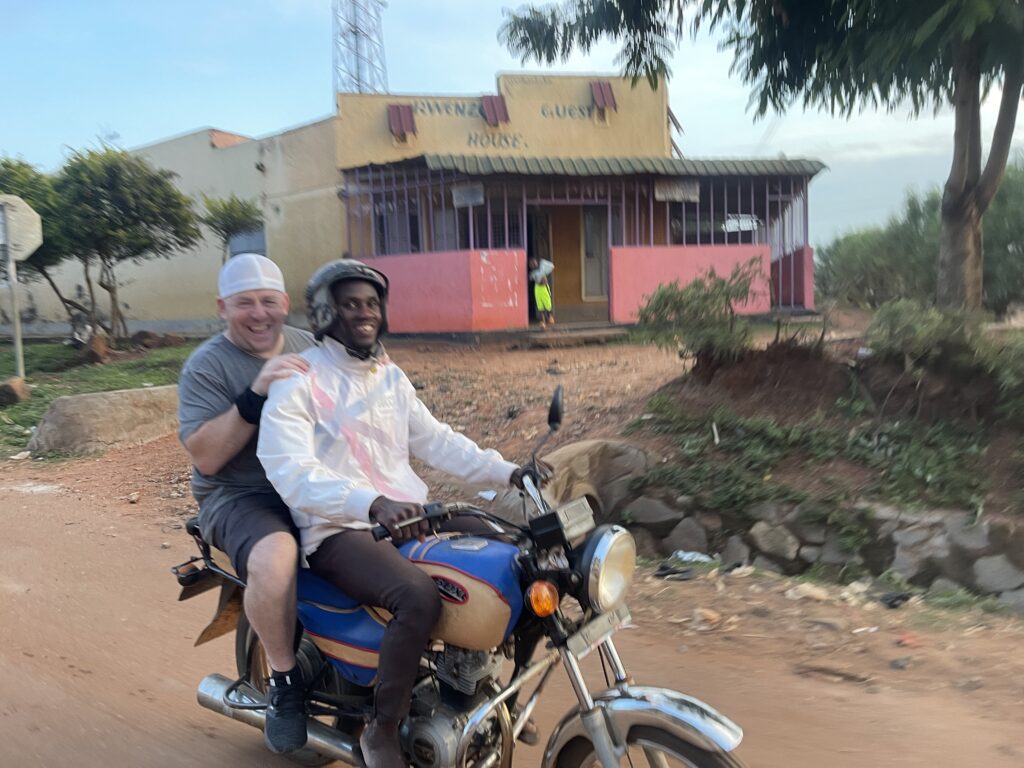 Taking local transport in Iganga, Uganda while training pastors with Jeremy in 2023