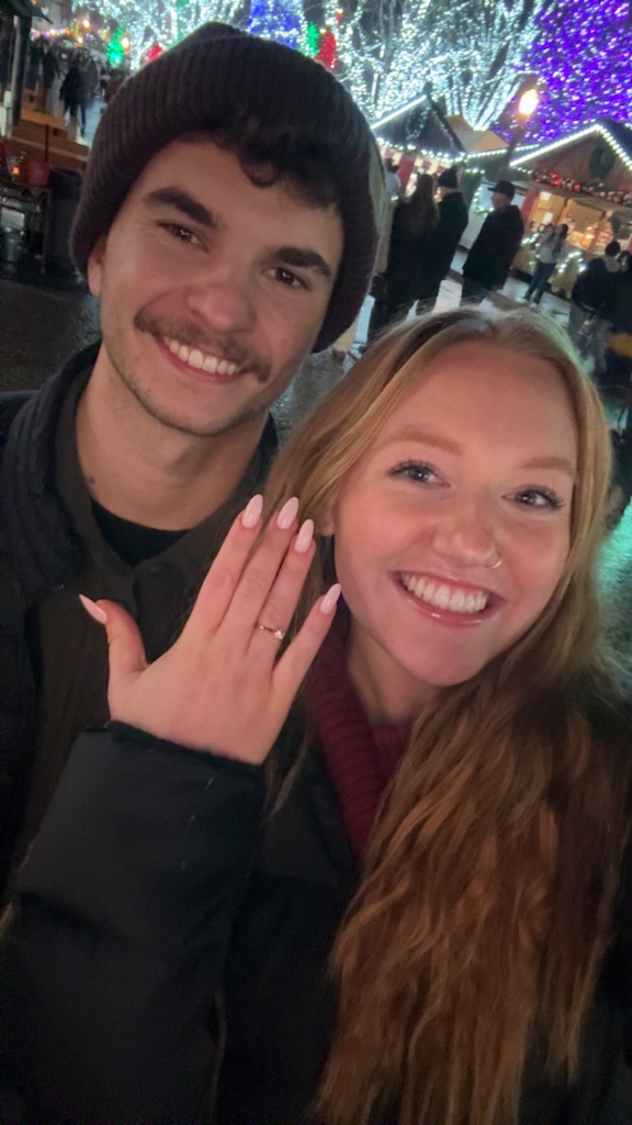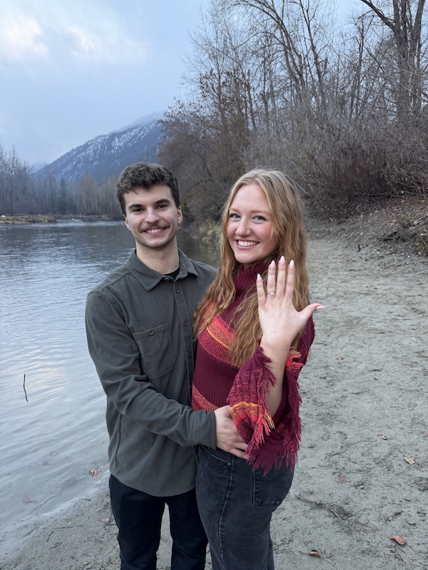 Andrew and Ivy Jo were in Leavenworth, a quaint mountain town a couple hours east of Seattle, where she was performing in a Christmas carol choir. Andrew had all the details set up, he did well on the “romance scale,” and a friend of theirs even hid in a tree near the spot where he proposed in order to catch the perfect pictures. Just in case he forgot any of the special words he wanted to say, Andrew also wrote Ivy Jo a letter filled with his heart sentiments. As he dropped to one knee and presented her with the ring, asking Ivy Jo to be his wife, others standing nearby in the picturesque spot stopped and quietly held their breath awaiting the reply. Ivy Jo’s emphatic, enthusiastic affirmative response led everyone to cheer and breathe again. 😉 As you can probably tell, I’m very proud of my son!